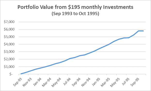 Using actual S&P 500 total returns from December 1995 to January 2023, that investment would have by now grown to $39,500 without investing a single additional dollar.